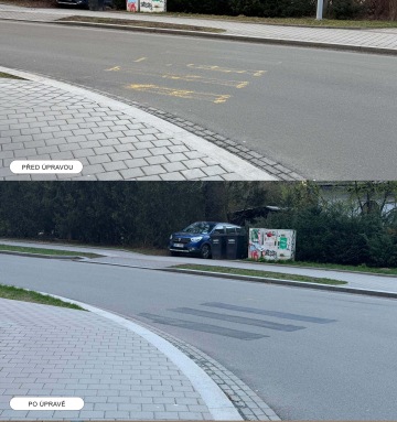 Bohužel menší úspěch slavíme u alternativního přechodu na ulici Lužánecká. Ten byl v minulosti kvůli stavbě vyznačen jako dočasný ve žluté barvě. Po jejím dokončení byl pouze přetřen černou barvou, která se ale postupem času začala znovu objevovat.