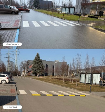 Řidiči ve velké většině případů bohužel nerespektovali, že se zde pohybují děti, a projížděli vysokou rychlostí. Zahájili jsme proto komunikaci s panem ředitelem Martinem Drnkem z jedné ze škol, který nám velmi ochotně pomohl s interní komunikací směrem k vedení ZET Office. Během několika týdnů se podařilo instalovat zpomalovací práh a další také u přechodu na konci bloku.